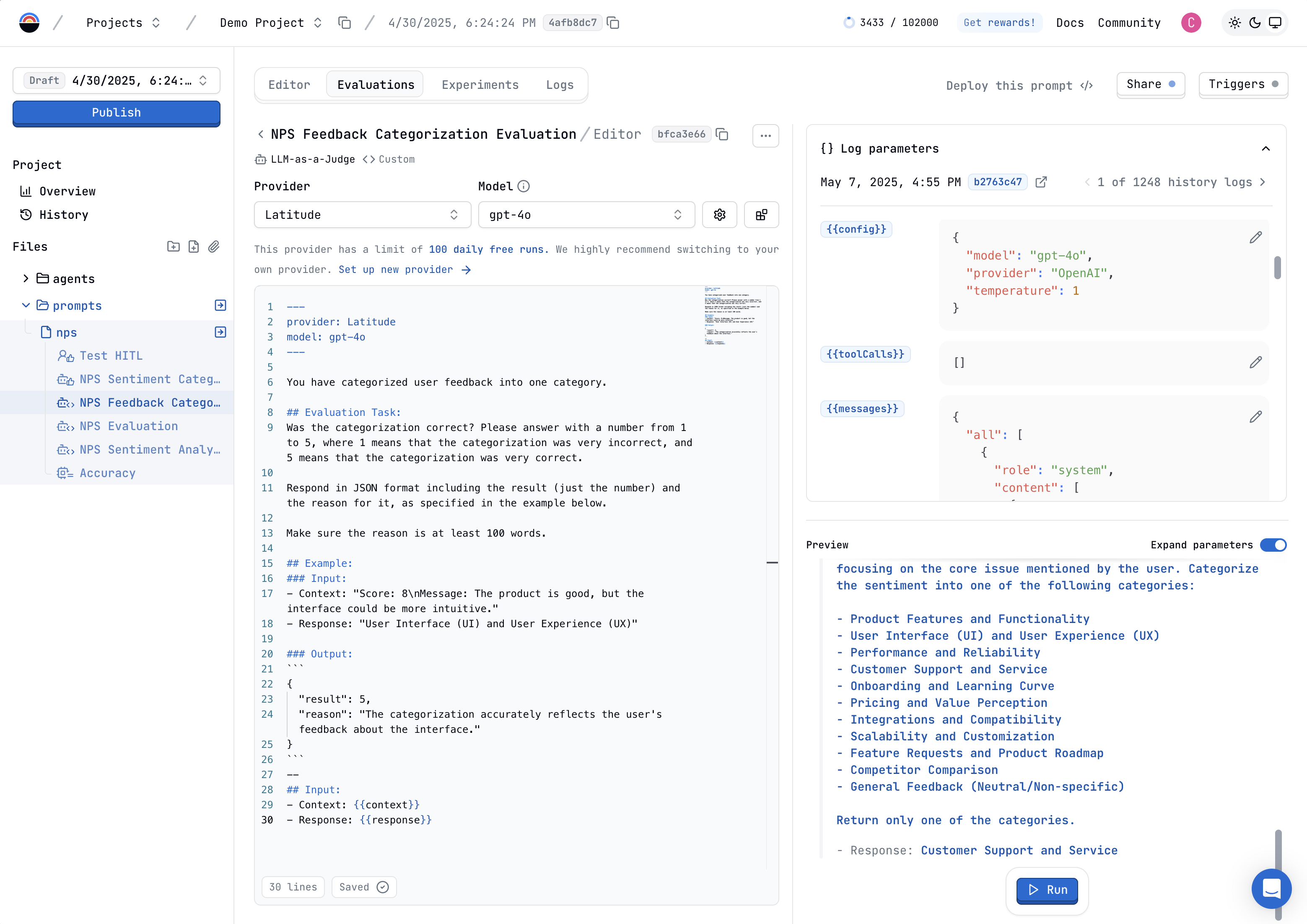 Users have long asked us to evaluate their prompts without having to run them via Latitudes Gateway. Well, we now support this use case. You can now upload external logs to Latitude for evaluation so that, even if you run your prompts outside of Latitude, you can keep tracking their performance. We support uploading logs to Latitude both from the UI and our SDK/HTTP API.Trigger evaluations from SDK
